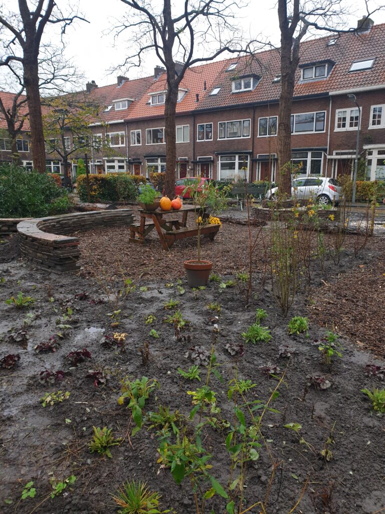 Zo werden gedurende diverse zaterdagen een vogelbosje, kabouter speelplek, muurtjes, randen van boomstammen en wilgenten en paadjes gemaakt. De bewoners regelden daarnaast ook een vlonder rond de boom midden op het plein, een materialenkast, informatiebord, composthoop en vogelhuisjes. Het kostte ruim een jaar om het ontwerp te realiseren. Dat lijkt lang maar zorgde er juist voor dat er steeds meer contacten tussen bewoners in de buurt ontstonden. Voor de zomer van 2025 is een heuse agenda met activiteiten gemaakt, waaronder uiteraard het onderhoud van het groen.